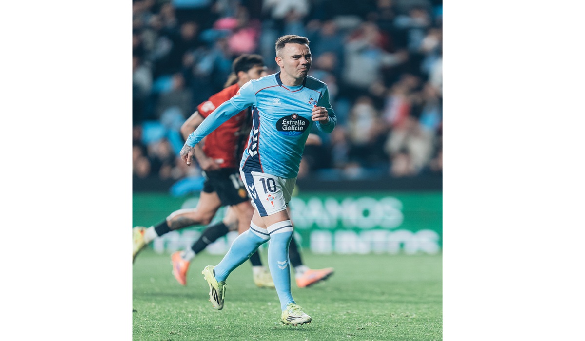 Penyerang Celta Vigo Iago Aspas melakukan selebrasi usai mencetak gol ke gawang Mallorca di laga La Liga.(X @RCCelta)