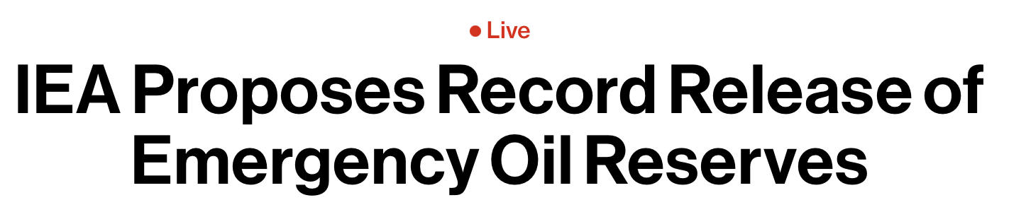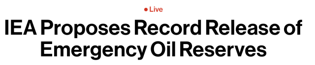 Eurointelligence also made the point that when talking about the strategic reserves of the G7, there are differences between the various the various G7 states. In some cases, such as France, the entire strategic reserve is held nationally by the French government. In other countries, and Eurointelligence didn’t name them, but in other countries, it is a mix with some of the reserves held by the government, but other reserves held by industry and by private companies and they might be less willing to release any part of their reserves. And anyway, the Euro Intelligence article made the further point that there are anyway legal limits to how much oil can be released from the strategic reserves in all of the G7 countries. There is apparently a legal obligation to retain at least 90 days of oil.