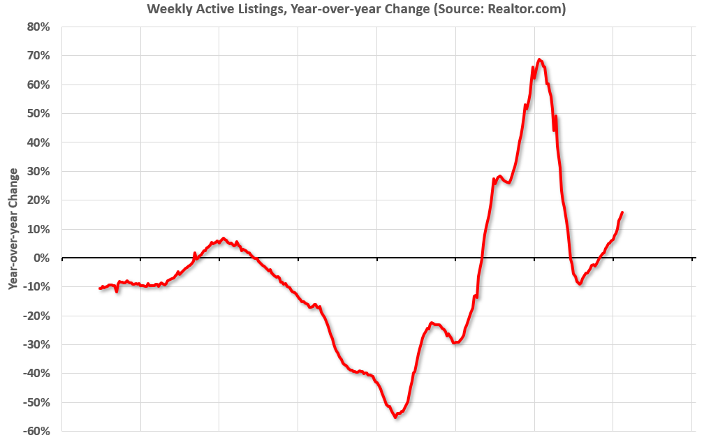 Meskipun listing baru masih jauh di bawah “tingkat normal sebelum pandemi”, listing baru kini meningkat YoY selama 17 minggu berturut-turut.