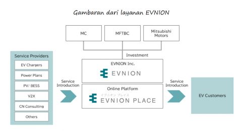 TRIO perusahaan asal Jepang, Mitsubishi Corporation (MC), Mitsubishi Fuso Truck and Bus Corporation (MFTBC) dan Mitsubishi Motors Corporation (Mitsubishi Motors) berencana bersama-sama mendirikan perusahaan baru bernama EVNION Inc (EVNION) pada Juni 2024. Perusahaan baru ini didirikan untuk mengoperasikan platform online dalam menyediakan layanan terpadu terkait kendaraan listrik (EV).