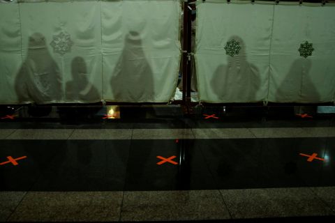 Jemaah melaksanakan salat tarawih pertama Ramadhan 1422 Hijriah di Masjid Pusdai, Bandung, Jawa Barat, Senin (12/4).(Antara/Novrian Arbi.)