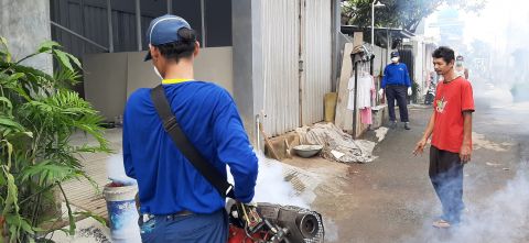 Petugas melakukan fogging untuk mencegah DBD di Kabupaten Purwakarta(MI/REZA SUNARYA)