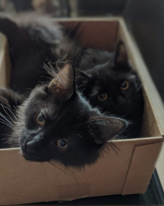 Kami mengadopsi mereka dari tempat penampungan lokal kami pada pertengahan Juli 2020. Foto ini diambil pada tanggal 28 Agustus (2020) oleh putra bungsu kami yang datang berkunjung dari Chicago dan bertemu dengan mereka. Di depan, Moogie (bernama Smaug dari tempat penampungan – tidak terlalu cocok untuknya, meskipun kami menyukai Tolkien), baru berusia lebih dari 3 bulan, dan Luna, hanya berusia 5 bulan, di belakang.