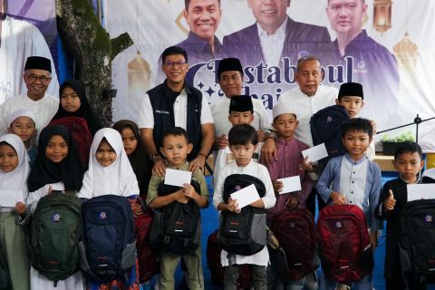 Pengurus NasDem Jabar bersama anak-anak peserta acara Fastabiqul Khoirot ke-8.(MI/NAVIANDRI)