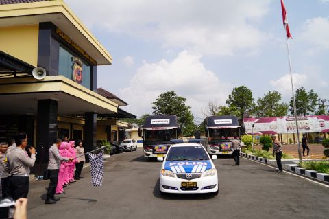 Polres Tasikmalaya Kota melepas bus-bus yang mengangkut pemudik pada program mudik gratis(MI/KRISTIADI)