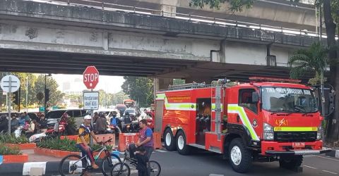 Penutupan jalan akibat kebakaran, kawasan Mampang Prapatan mengalami macet parah.(Metro TV)