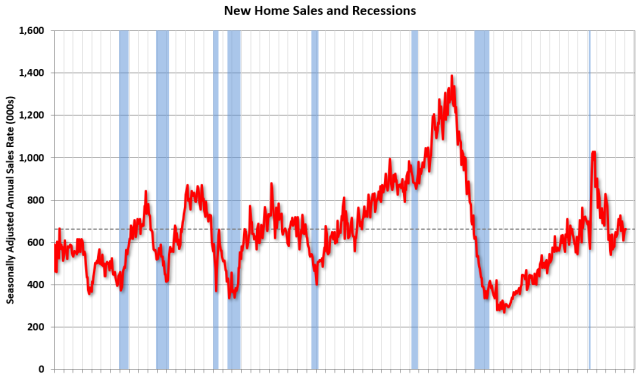 Grafik ini menunjukkan Penjualan Rumah Baru sejak tahun 1963. Garis putus-putus adalah tingkat penjualan bulan lalu.