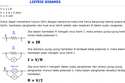 Hukum Ohm menjelaskan bahwa keterkaitan beda potensial atau tegangan dari suatu sumber arus, kuat arus listrik, dan resistansi suatu rangkaian. Hukum Ohm menyatakan jika tegangan dalam suatu rangkaian dinaikkan, arusnya akan naik. Begitu pula sebaliknya.