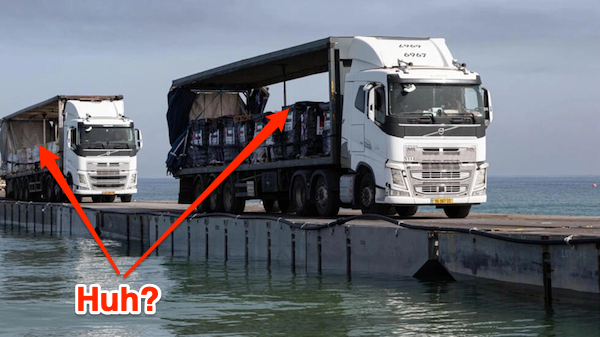 Truk bantuan melintasi dermaga yang dibangun militer AS ke Gaza untuk pertama kalinya Perancis24. Foto: