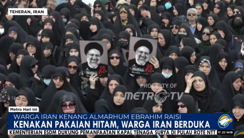 Puluhan ribu warga Iran berkumpul di jalan-jalan Teheran pada Rabu (22/5) untuk mengikuti prosesi pemakaman presiden Ebrahim Raisi(Metro TV)