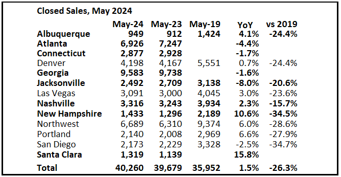 Ini adalah gambaran kedua dari beberapa laporan awal pasar lokal di bulan Mei. Saya melacak lebih dari 40 pasar perumahan lokal di AS. Beberapa dari 40 pasar tersebut merupakan negara bagian, dan beberapa lagi merupakan wilayah metropolitan. Saya akan memperbarui tabel ini sepanjang bulan saat data tambahan dirilis.