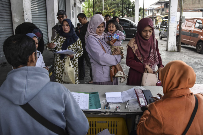 Anggota Keluarga Penerima Manfaat (KPM) antre saat pencairan tunai Bantuan Sosial (Bansos)(Antara)
