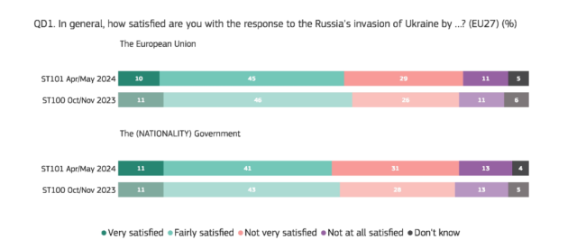 Berikut adalah hasil survei Eurobarometer Musim Semi 2024 yang diminta dan dikoordinasikan oleh Komisi Eropa von der Leyen.