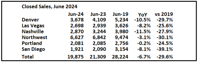Ini adalah gambaran pertama dari beberapa laporan awal pasar lokal di bulan Juni. Saya melacak lebih dari 40 pasar perumahan lokal di AS. Beberapa dari 40 pasar tersebut merupakan negara bagian, dan beberapa lagi merupakan wilayah metropolitan. Saya akan memperbarui tabel ini sepanjang bulan saat data tambahan dirilis.