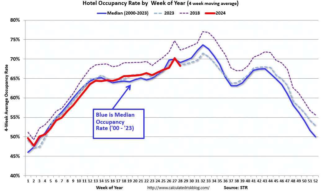 Rata-rata tingkat hunian selama 4 minggu akan meningkat secara musiman karena perjalanan rekreasi musim panas.