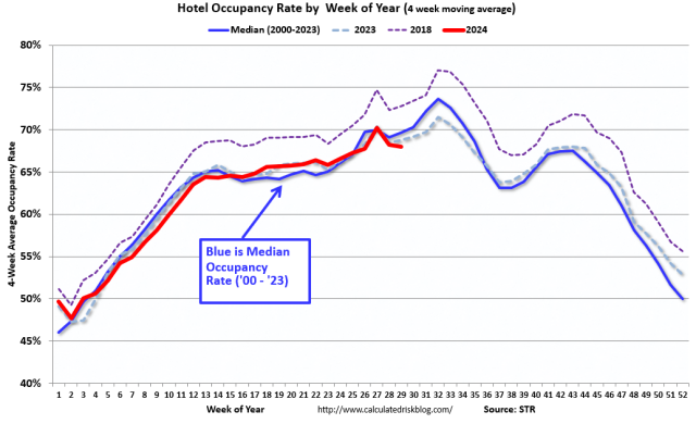 Rata-rata tingkat hunian selama 4 minggu akan meningkat secara musiman karena perjalanan rekreasi musim panas. Sejauh ini, musim perjalanan liburan musim panas mengecewakan.