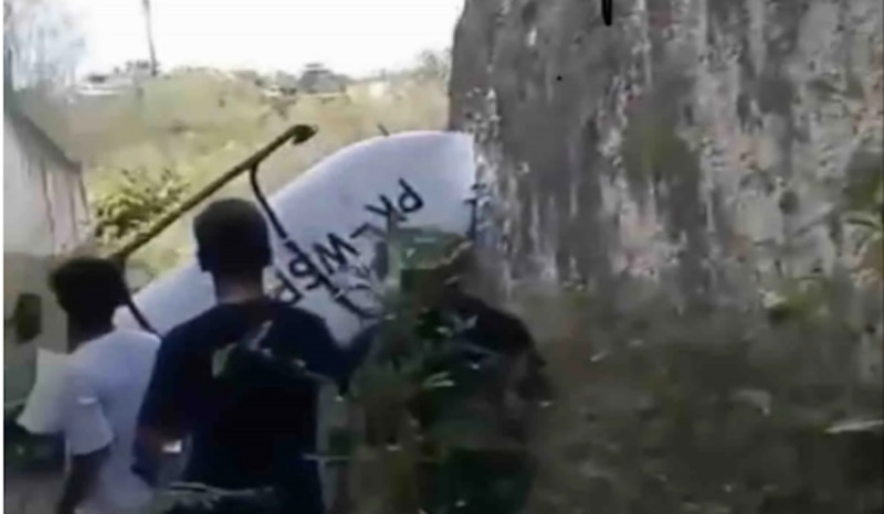 Dalam video amatir yang diterima, helikopter tersebut berwarna putih jatuh di antara bebatuan. Di helikopter tersebut bertuliskan PK-WSP, Bell 505.