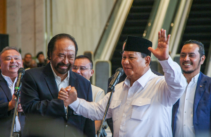 Ketua Umum Partai NasDem Surya Paloh (kiri) bersama calon presiden terpilih Prabowo Subianto(MI / Usman Iskandar)