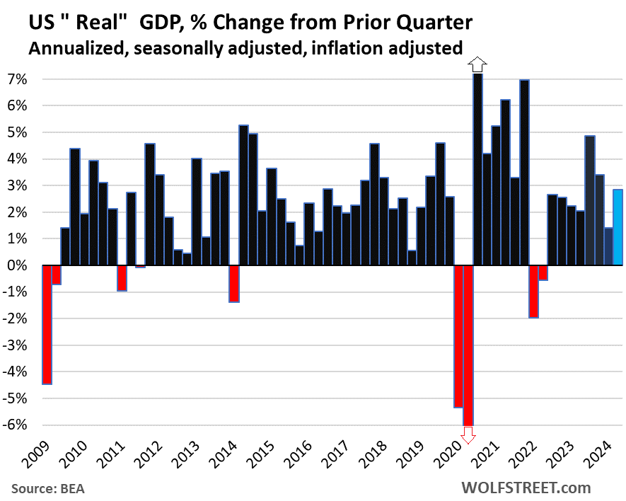 Ukuran sebenarnya perekonomian AS: PDB “dolar saat ini” (tidak disesuaikan dengan inflasi dan dinyatakan dalam dolar saat ini) meningkat sebesar 5,2%, menjadi $28,6 triliun secara tahunan.