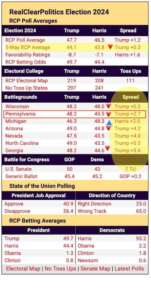 Charts Friday: New RCP charts (bad news for Trump); many Covid updates (a little good news).