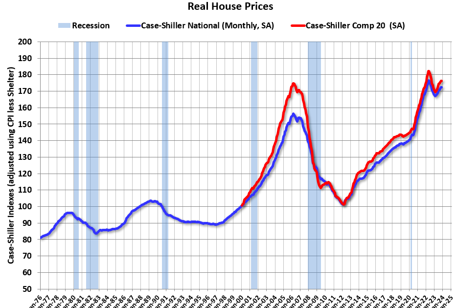 Hari ini, di Buletin Real Estat Risiko Terhitung: https://calculatedrisk.substack.com/p/inflation-adjusted-house-prices-23-56a