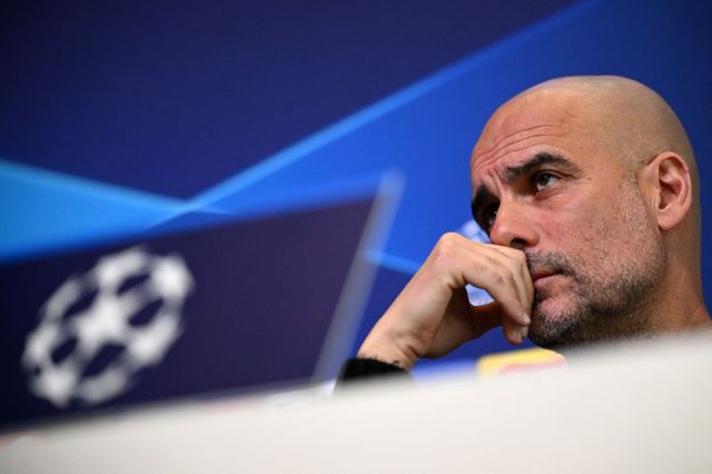 Manajer Manchester City asal Spanyol Pep Guardiola menghadiri konferensi pers di tempat latihan Manchester City di barat laut Inggris(Oli SCARFF / AFP)