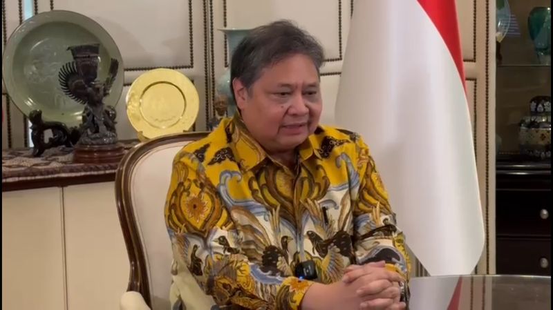 Tangkapan layar video pernyataan Airlangga Hartarto terkait pengunduran diri dari posisi Ketua Umum Partai Golkar.(MI/Akhmad Mustain)