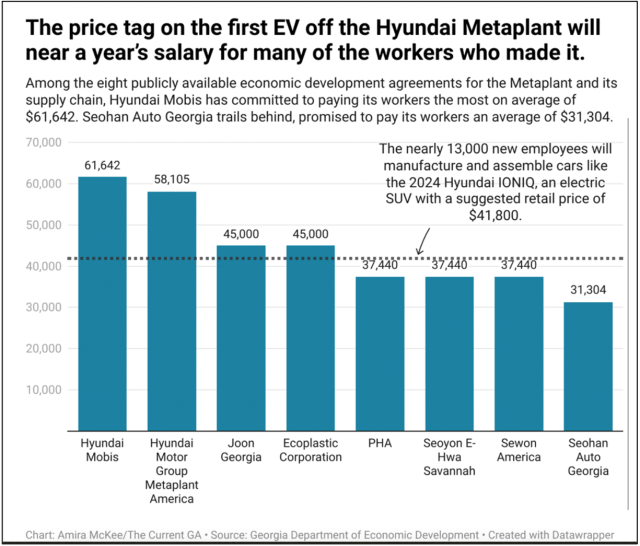 I was reminded of how well I was paid by a recent story about the Hyundai Electrical Vehicle Plant currently under construction in rural Bryan County inland from Savannah, Georgia. I drive by this rapidly emerging industrial behemoth several times a year, and it is astonishing in scope. And it promises an economic boon for Coastal Georgia, where in 2022 yearly wages averaged $30,686 in Bulloch County and $46,305 in Effingham County just to the north of the Hyundai Metaplant. From The Current (26 July 2024), the only good source of news in the area: