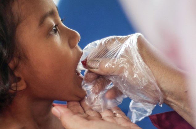 Pemberian vitamin A kepada balita di Posyandu Bougenvile, Kota Depok, Jawa Barat, Rabu (7/8/2024).(ANTARA FOTO/Yulius Satria Wijaya )