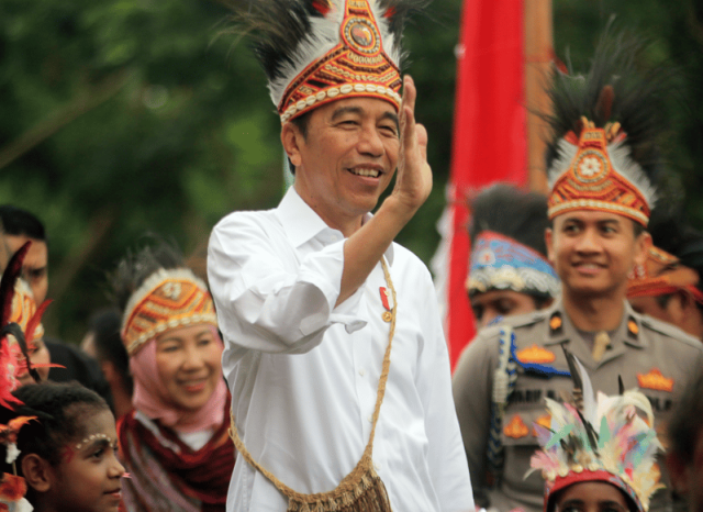 Presiden Joko Widodo menyapa anak-anak yang menyambutnya saat tiba di Istora Papua Bangkit, Jayapura(Antara)