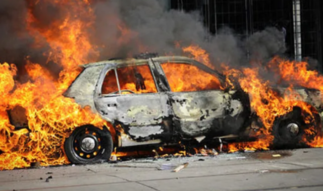 SATU unit mobil patroli kepolisian yang berada di Pospol Pejompongan, Jakarta Pusat, dibakar tadi malam. Tiga pelaku langsung ditangkap malam itu.