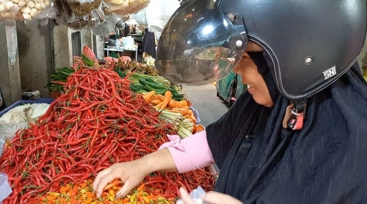 Ia menyebutkan, cabai rawit luar yang sebelumnya dijual Rp70 ribu per kilogram kini turun menjadi Rp40 ribu per kg. Sedangkan untuk cabai rawit lokal Rp90 ribu per kg turun jadi Rp60 ribu per kg. Cabai besar keriting dari Rp55 ribu per kg turun menjadi Rp40 ribu per kg.