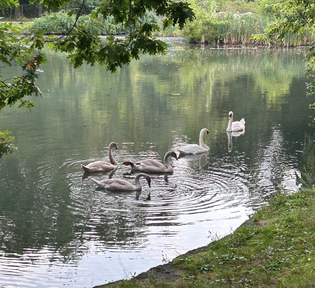 Penawarnya hari ini. Ann M: “Keluarga angsa tahun ini. Anak-anak muda yang anggun tumbuh dengan cepat. Mereka dulu cukup kecil di bulan Mei, sekarang sudah sebesar ibu dan ayah. Roger Williams Park, Providence RI. 25 Agustus 2024.”