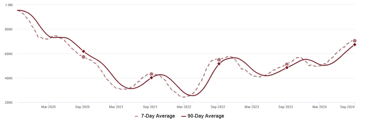 Pada tanggal 6 September, persediaan berada di 704 ribu (rata-rata 7 hari), dibandingkan 704 ribu pada minggu sebelumnya.