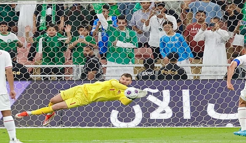 Kiper timnas Indonesia Maarten Paes menahan eksekusi penalti pemain Arab Saudi di laga kualifikasi Piala Dunia 2026.(Instagram @maartenpaes)