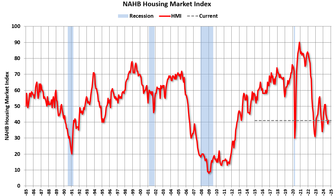 Asosiasi Nasional Pembangun Rumah (NAHB) melaporkan indeks pasar perumahan (HMI) berada di 41, naik dari 39 pada bulan lalu. Angka di bawah 50 menunjukkan bahwa lebih banyak pembangun yang memandang kondisi penjualan lebih buruk daripada baik.