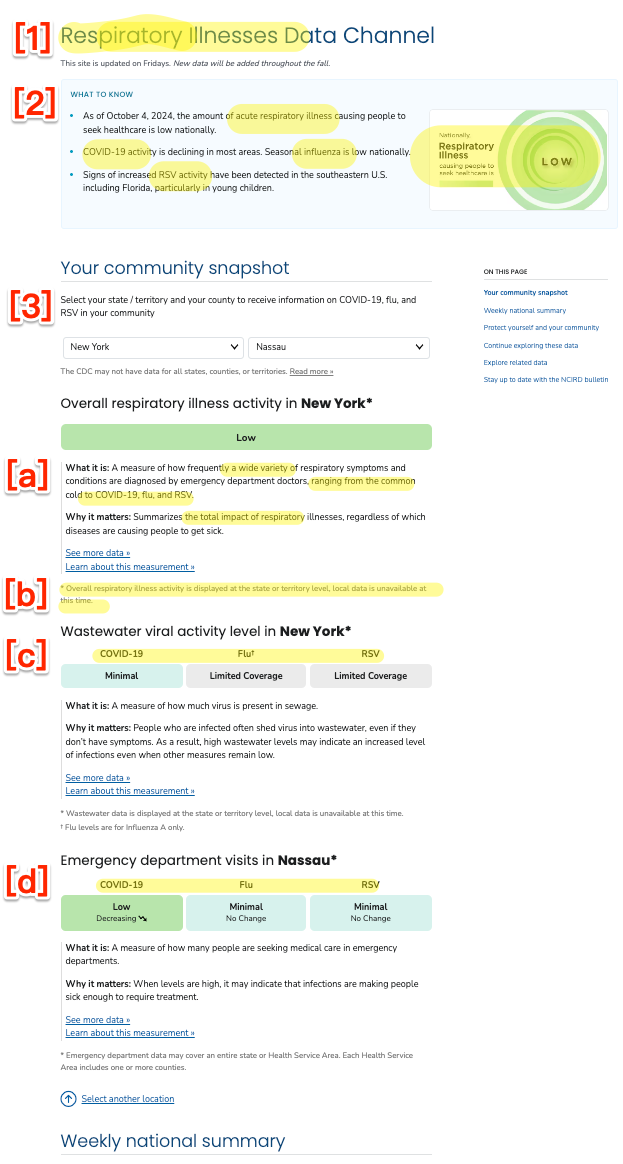 The page is titled “Respiratory Illnesses Data Channel.” Although “Community Snapshot” is a subtitle on that page, we’ll follow Tin in using that name (or “Snapshot”). More: