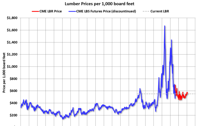 LBR saat ini berada di $551,00 per 1000 board feet, naik 5,7% dari $521,5 tahun lalu.